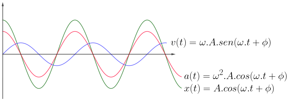 Uma vez percebido isto, interessa-nos, aqui em cinemática, descrevermos o espaço, velocidade e aceleração do MHS a partir de funções. |