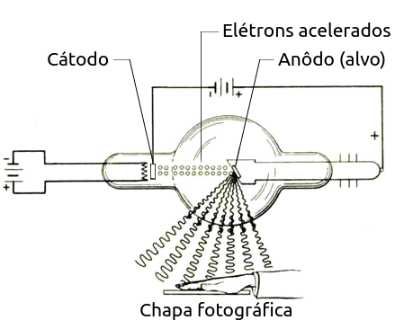 Todo este aparato é regulado para que os elétrons sejam ejetados do cátodo e se encaminhem aceleradamente para o anôdo, de modo que o atinjam com uma velocidade de aproximadamente 10% da velocidade da luz no vácuo (v ≅ 0.1c). Ao colidirem com a placa do anôdo, Röntigen percebeu que raios eram emanados desta placa e, quando era colocada uma placa fotográfica no curso destes raios, ela era sensibilizada; percebeu também que muitos materiais eram transparentes a sua passagem, incluindo o corpo humano, excetuando-se os ossos. Röntigen chamou estes raios misteriosos de raios X
