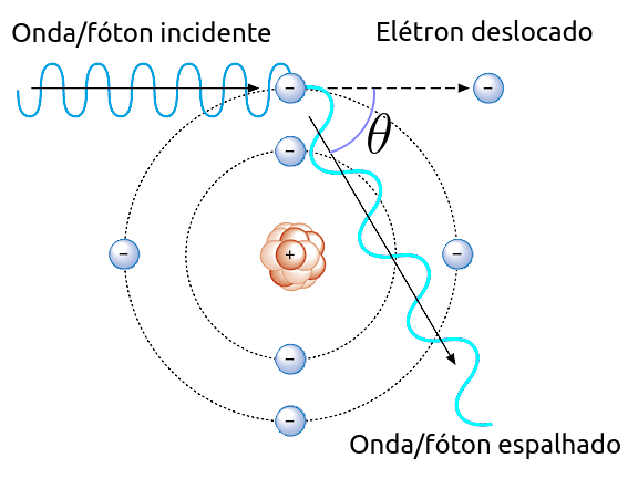 Classicamente, é esperado que se raios X excitam um elétron, este elétron vibre e espalhe raios X com a mesma frequência da onda excitante. No entanto, observações experimentais constataram que isto nem sempre acontece, que dependendo do ângulo de incidência, a onda espalhada podia ter uma frequência menor do que a da onda incidente. Para resolver este empasse, o físico americano Arthur Holly Compton (★ 1892 1962 ✝) considerou que os fótons, embora não possuíssem massa, possuiriam momento (isto já era sugerido pela relatividade restrita); então, a partir disto, ele trabalhou a lei da consevação da energia e do momento para explicar o fenômeno físico.