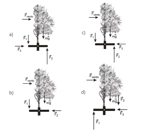 Assim, qual é o conjunto de forças agindo nas raízes dessa árvore que poderia garantir seu equilíbrio estático?