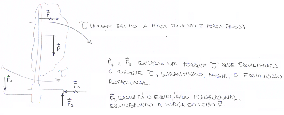 Para que a árvore permaneça em equilíbrio estático é necessário que tanto a força quanto o torque resultante na árvore sejam nulos. O torque de uma força com relação a um ponto O é dado pelo produto do módulo da força pelo seu braço, que é a distância do ponto O à linha de ação da força.