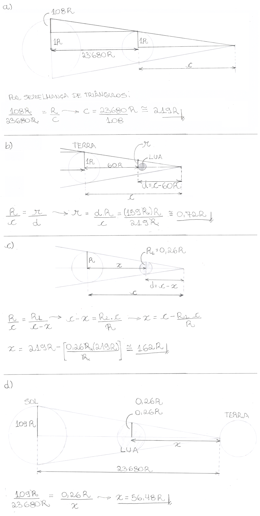 b) o raio da seção normal ao cone de sombra, passando pela Lua;