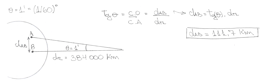 Lista de exercícios 7-54: Ângulo visual, eclipses e fases da lua