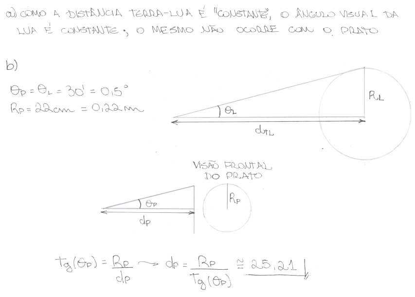 b) A que distância do observador deve estar o prato para que a comparação faça sentido?