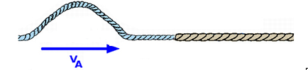 c) o fenômeno da continuidade do pulso na corda mais fina, sem inversão de fase do pulso, porém com velocidade de propagação diferente da velocidade do pulso incidente.