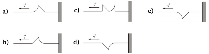 Supondo que a superfície reflita perfeitamente o pulso, deve-se esperar que no retorno, após uma reflexão, o pulso assuma a configuração indicada em: